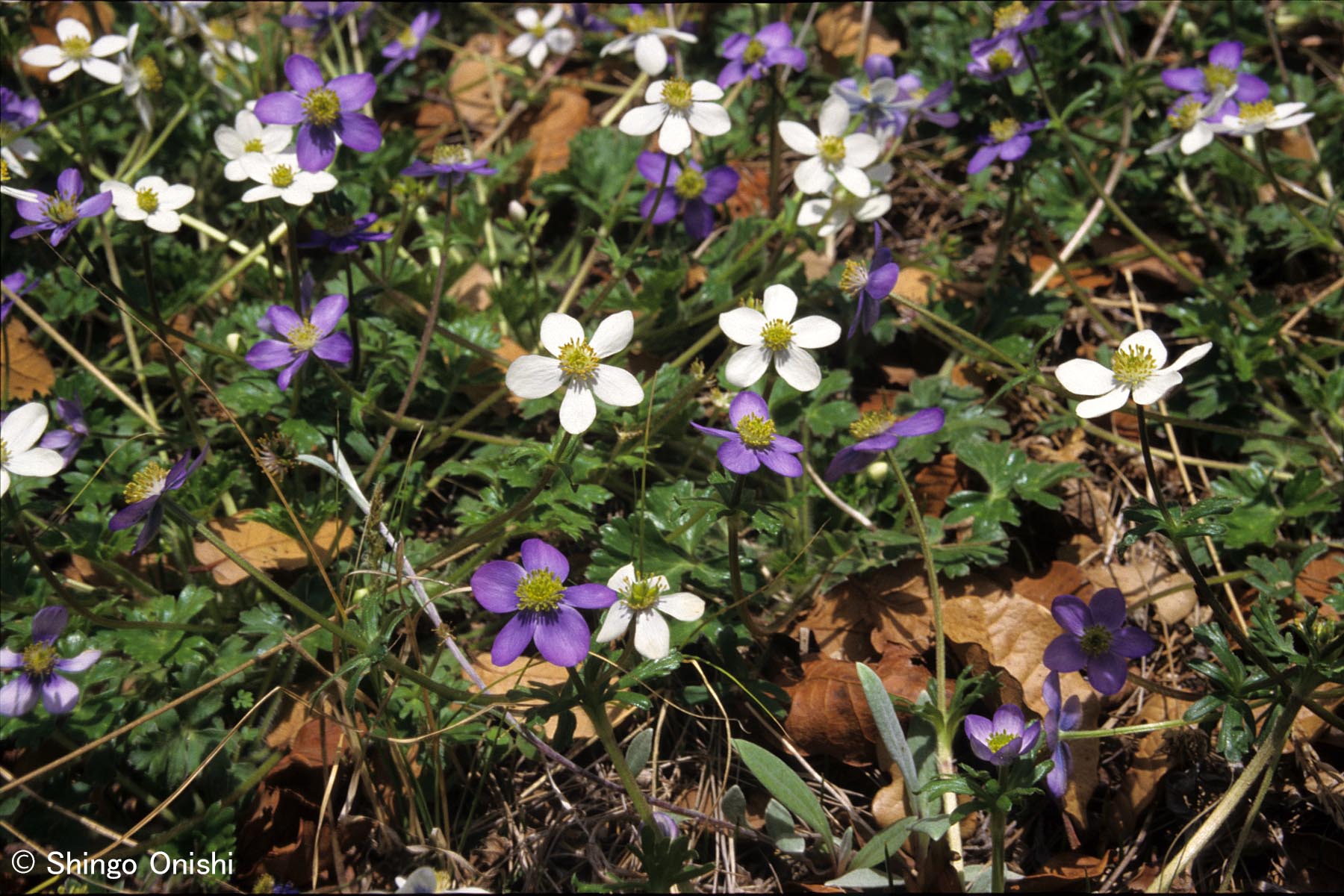 Photo 011bBy Shingo Onishi / 2025年2月14日 Wild alpine flowers (Anemone obtusiloba) at Mt. Victoria (Natmataung) (2), Chin State, May 1998 ヴィクトリア山に咲く野生のアネモネの1種 (2)