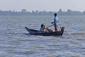A boat with five members on board goes on Ayeyarwady Delta, Ayeyarwady Region, Jan. 2015