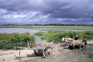 All, domestic animal, people, sceneryPhoto 007 Shingo Onishi / 2025年1月17日 Cattle carries the rice seedlings, Magway Region, Aug. 2001