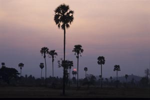 All, plant, sceneryPhoto 017 Shingo Onishi / 2025年3月28日 Toddy palm (Borassus flabellifer) plantation at twilight, Bago Region, Feb. 2004